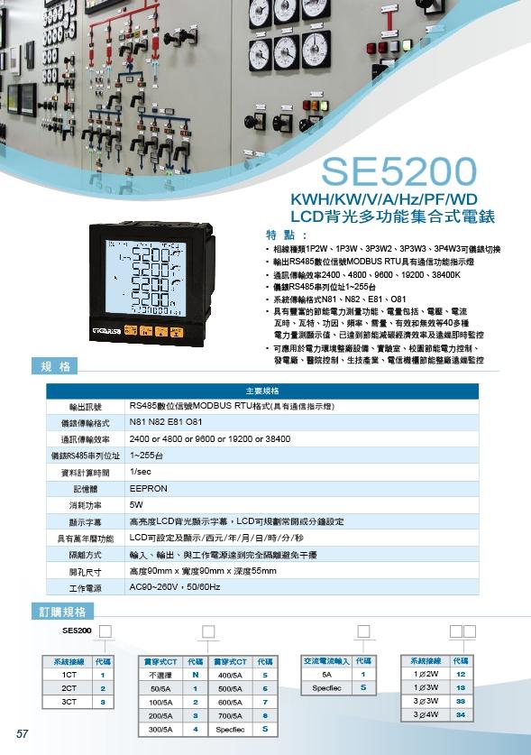 SE5200集合式電錶KWH-KW-V-A-Hz-PF-WD